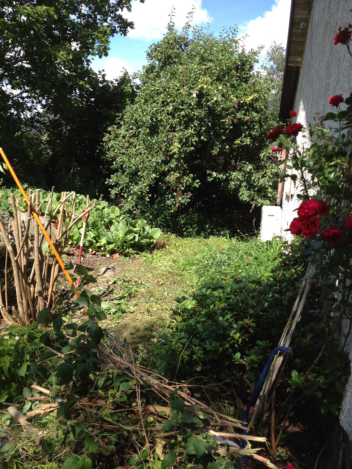 Nu var det dags för nästa, och jag kände hur krafterna tröt nästan direkt. Röret var väldigt svårt att få bort på grund av träd som växte över, och rosor, flera stycken rosor.