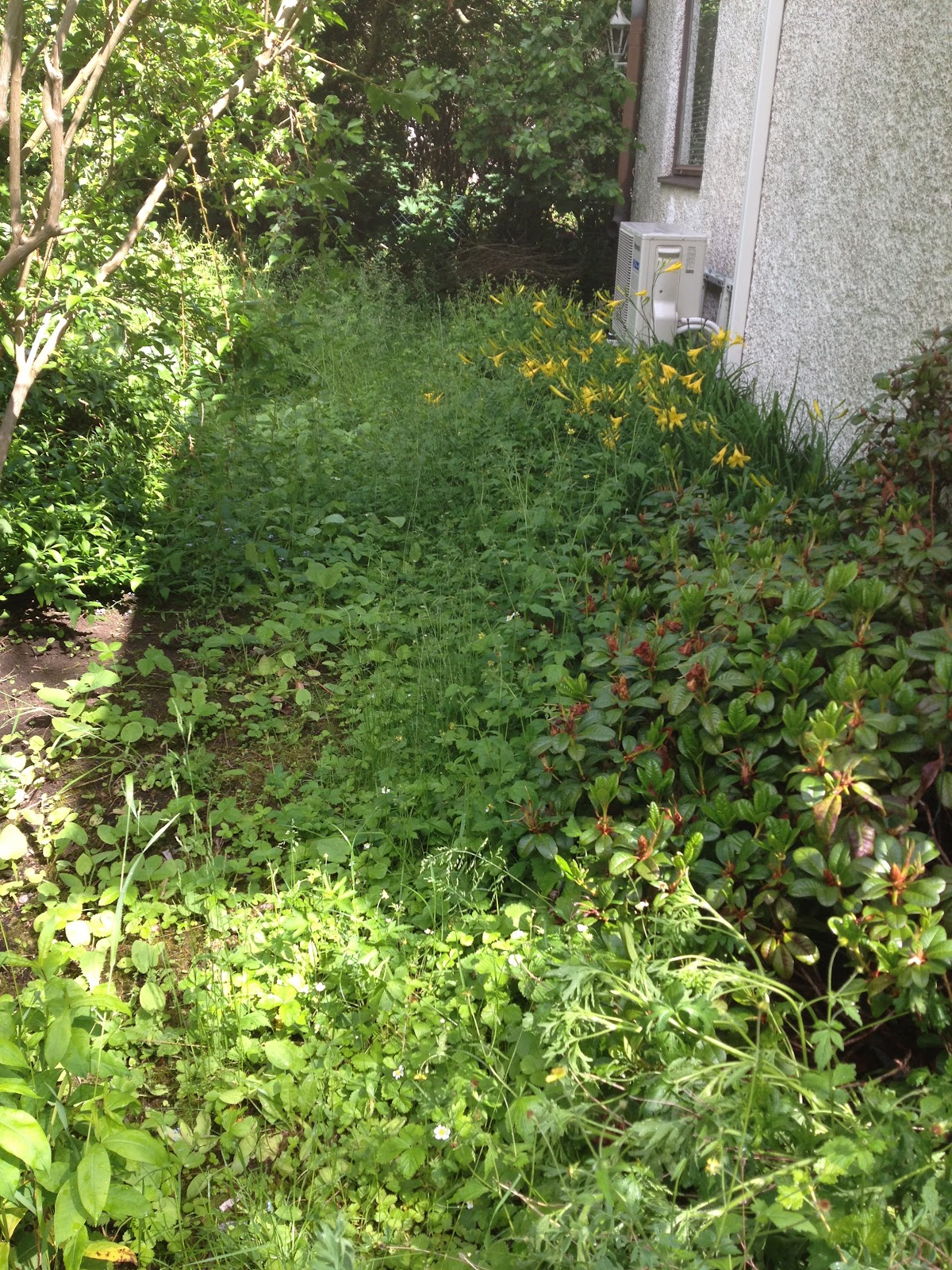 Marianne kom fram till hörnet där jag stod och jobbade. “Oj då, det där ser inte bra ut. Det har nog dolts av alla buskarna som du tagit bort nu.